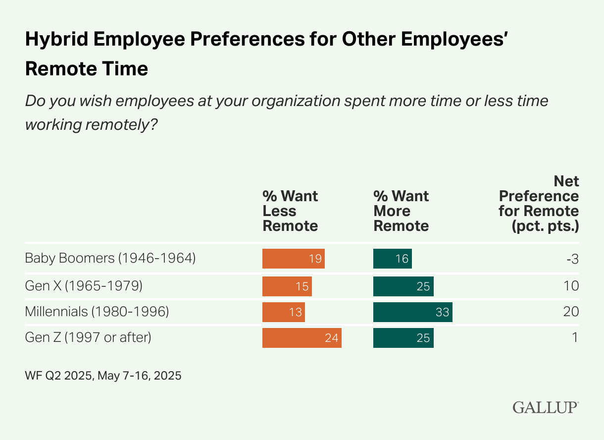 This mismatch signals an opportunity for employers to revisit return-to-office policies and ensure they align with what employees want. Global companies with operations across the U.S., Europe, and Asia may need to take a geo-specific approach, recognizing that preferences vary not only by generation but also by region.